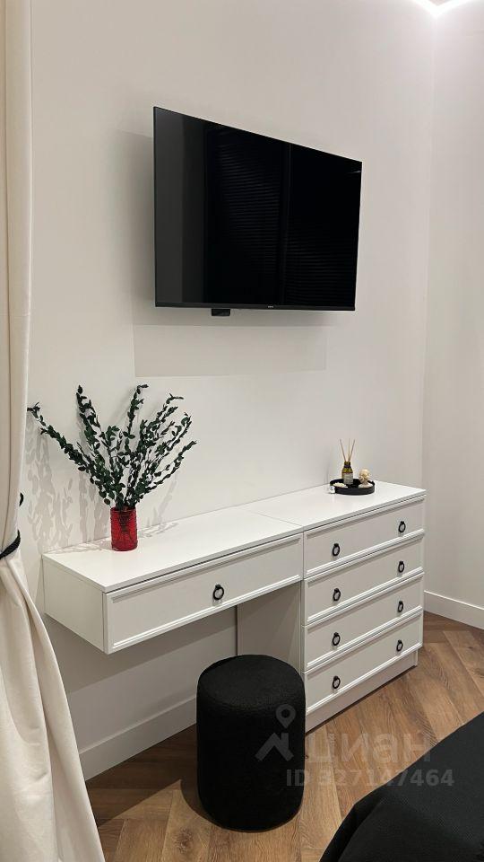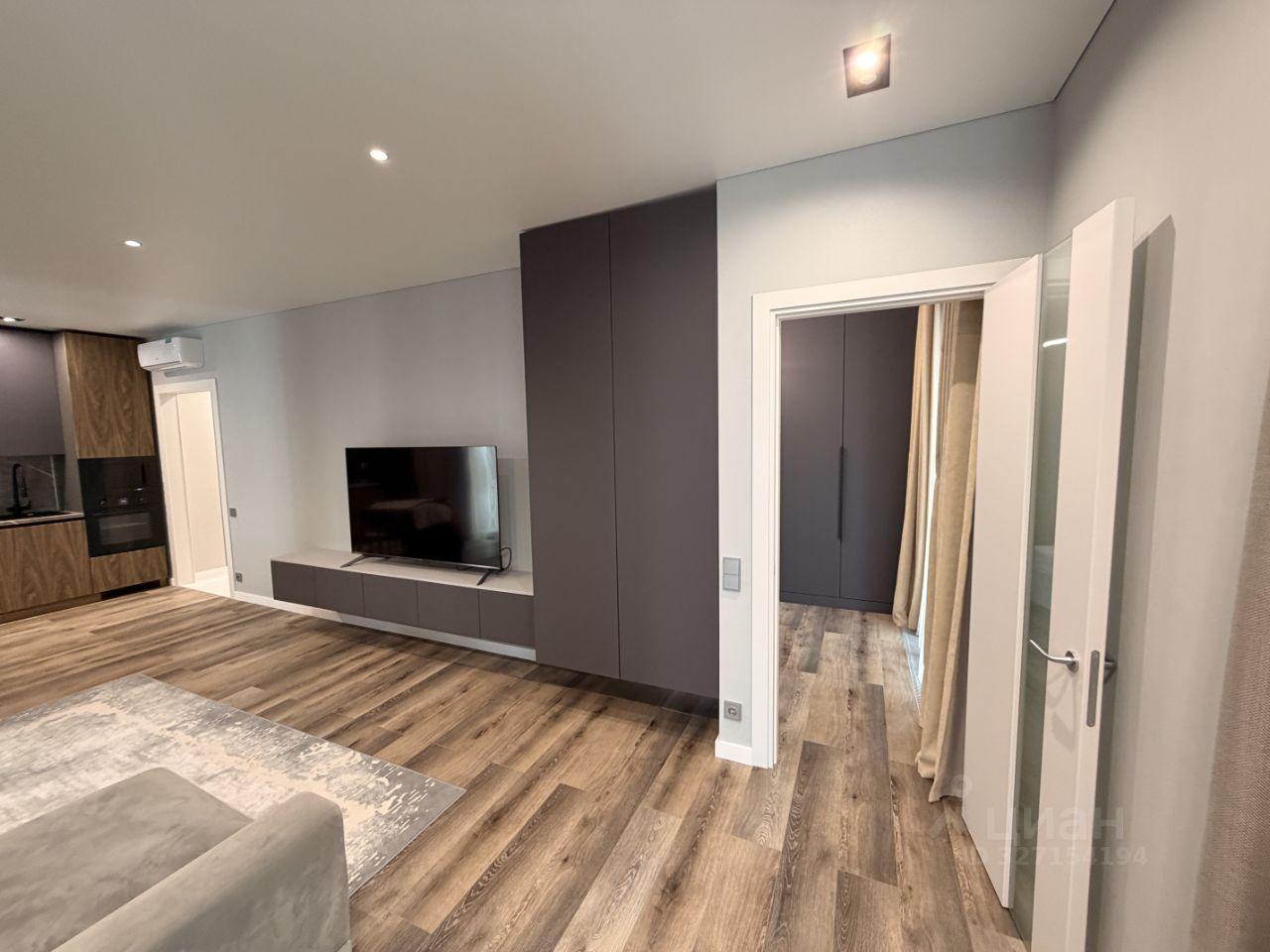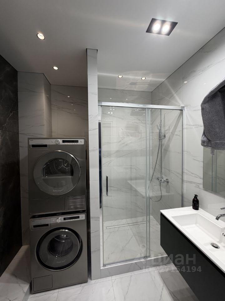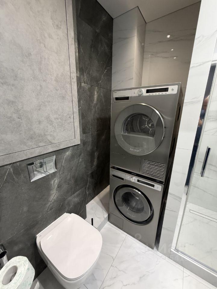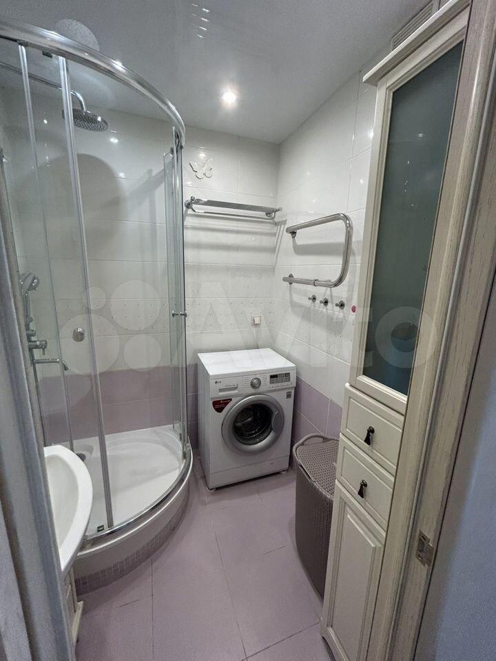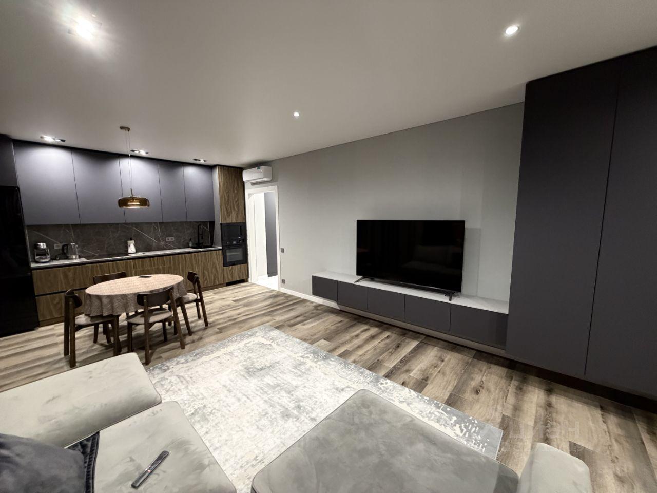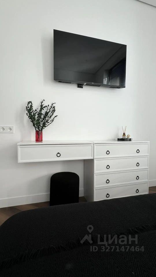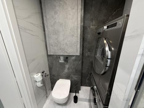 В квартире есть всё необходимое для комфортного проживания: современная мебель на кухне и в комнате, а также полный комплект бытовой техники — кондиционер, холодильник, посудомоечная и стиральная машины, телевизоры (все smart tv). Санузел совмещённый, оборудован ванной.