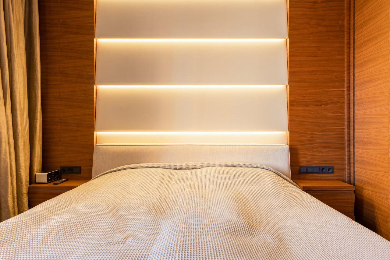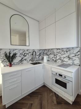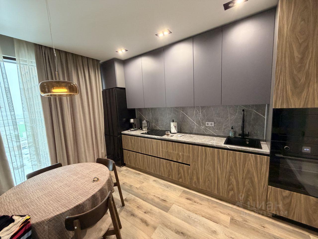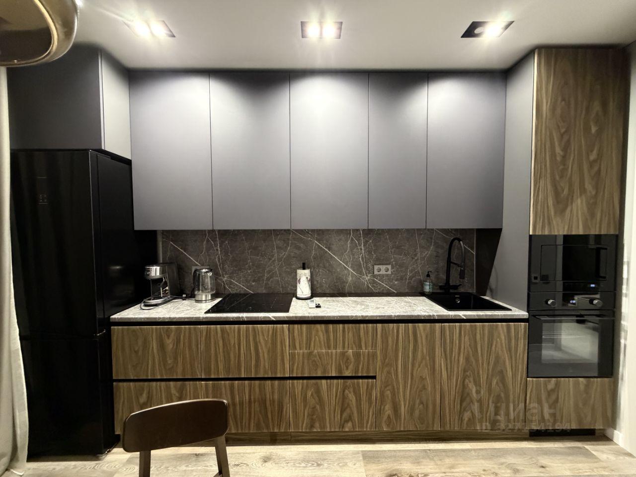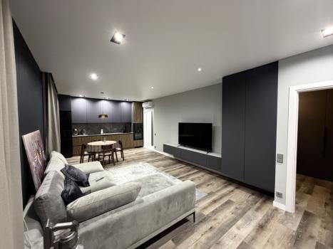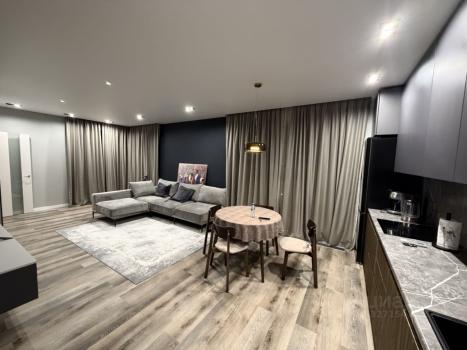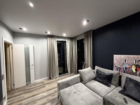 Интерьер выполнен в современном сдержанном стиле. Использованы качественные материалы отделки. Квартира полностью меблирована и оснащена всей необходимой бытовой техникой: кондиционер, стиральная машина, встроенная техника на кухне.