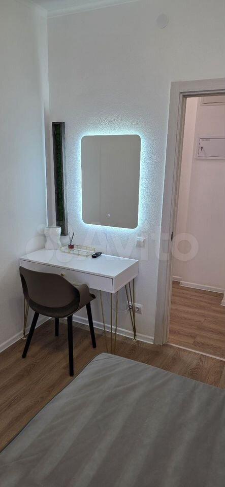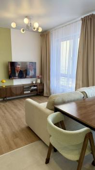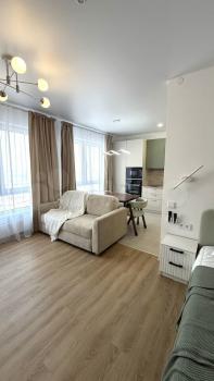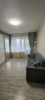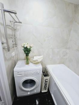 В квартире сделан дизайнерский ремонт, что создаёт атмосферу комфорта и уюта. Есть вся необходимая мебель как в комнате, так и на кухне, поэтому вам не придётся беспокоиться о дополнительных тратах на обстановку. Из техники в вашем распоряжении кондиционер, холодильник, телевизор и стиральная машина. Совмещённый санузел оборудован ванной. Окна выходят во двор, поэтому в квартире тихо и спокойно.