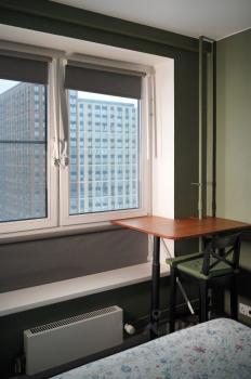 Квартира находится на 10м этаже, где окна выходят в тихий двор.