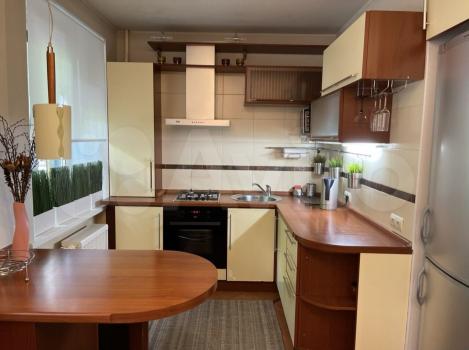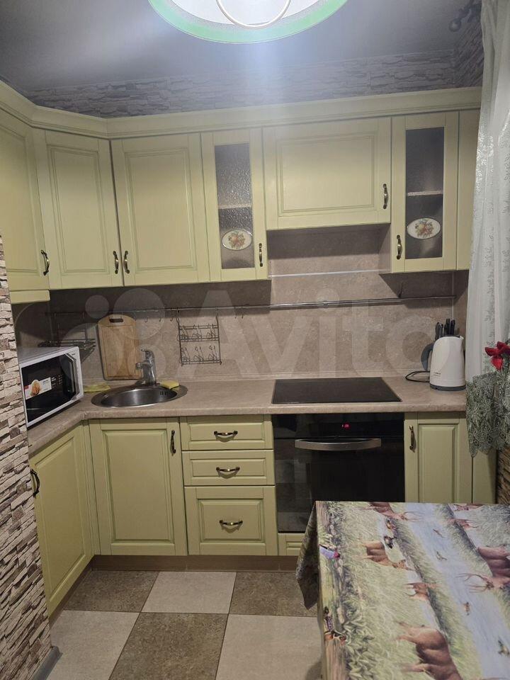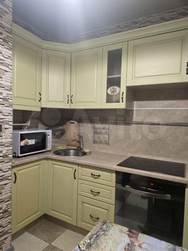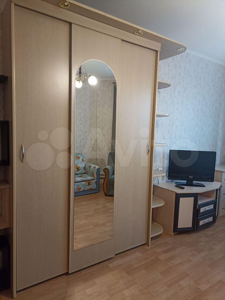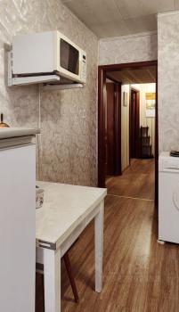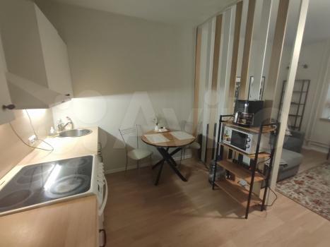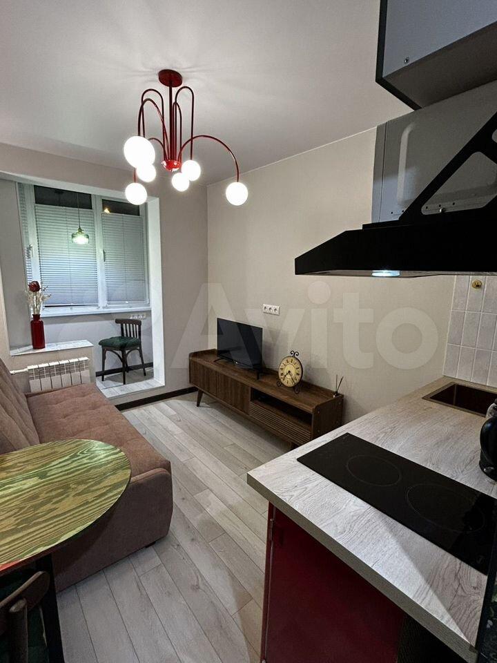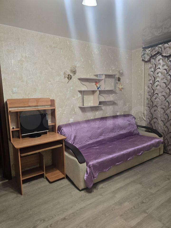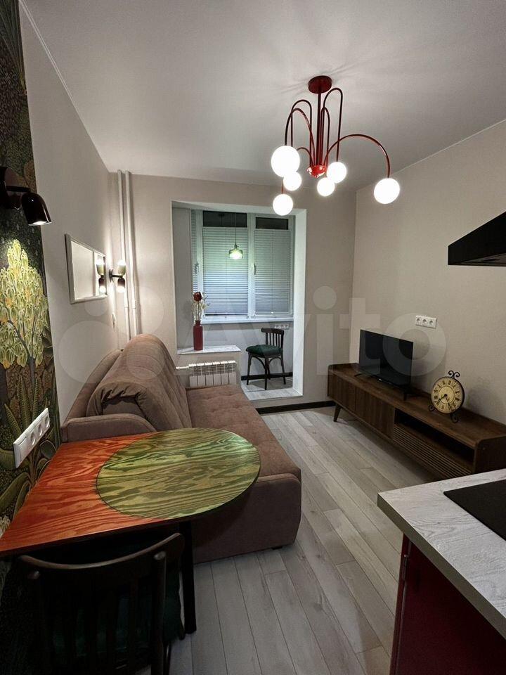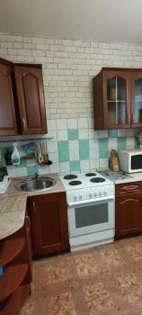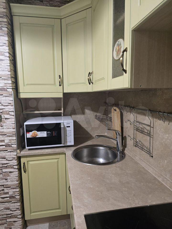 Квартира предлагает косметический ремонт и обставлена мебелью как на кухне, так и в комнате. Для вашего удобства в наличии вся необходимая техника: холодильник, телевизор и стиральная машина. Высота потолков составляет 2.64 метра, что создаёт ощущение простора.