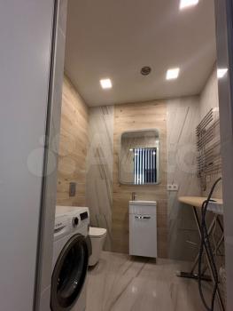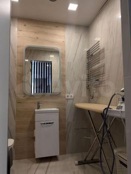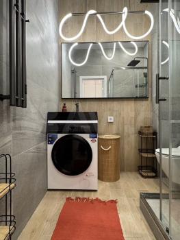 • Стирально-сушильная машина Саndy (NFС управление), • Большая раковина из искусственного мрамора • Зеркало с подсветкой (правильное освещение лица) • Электрический полотенцесушитель с таймером • Дополнительные места хранения