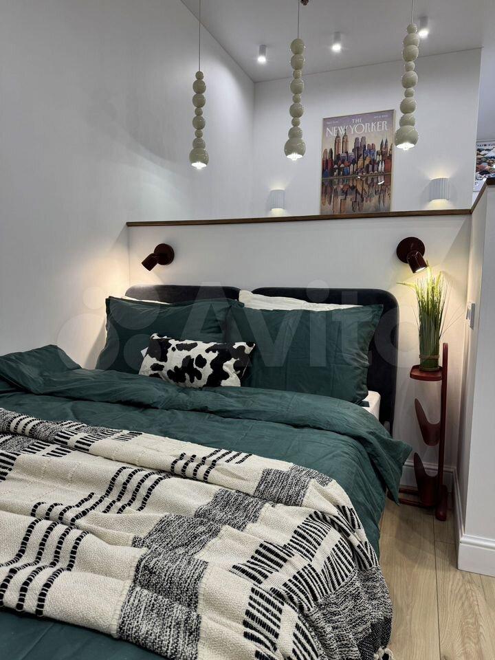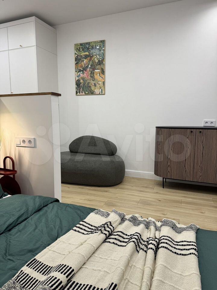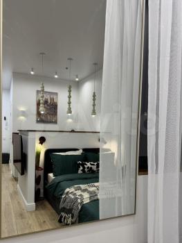 Зона отдыха: • Большой диван-кровать с ящиком для хранения • Смарт ТВ • Письменная зона • Кондиционер с Wi-Fi – управление (очень тихий режим) • Стильные светильники и текстиль