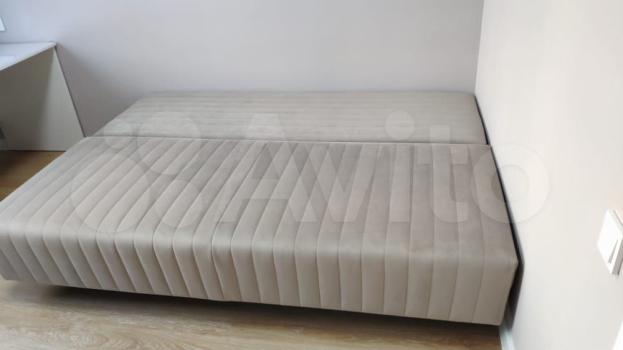 В комнате установлен телевизор и удобный диван, который превращается в кровать с матрасом, что заменяет полноценную кровать, матрас встроенный, а также вместительные шкафы для хранения вещей. За перегородкой установлено скрытое спальное место - шкаф - кровать, дополнительное место для сна , для одного человека. Так же можно не использовать, и поставить детскую кроватку.