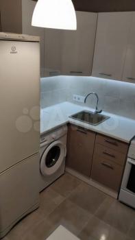 Квартира полностью готова для комфортного проживания. В комнатах и на кухне есть вся необходимая мебель. На кухне установлен холодильник, а в ванной комнате — стиральная машина и ванна. Санузел совмещенный. Также в квартире проведён интернет, что позволяет оставаться на связи в любое время.