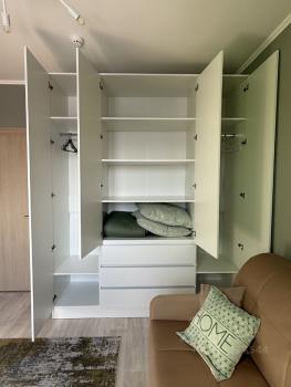 В квартире есть вся необходимая мебель и техника: телевизор, холодильник, чайник, микроволновка, посуда, стиральная машинка, пылесос, напольная сушилка, гладильная доска.