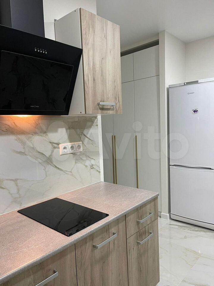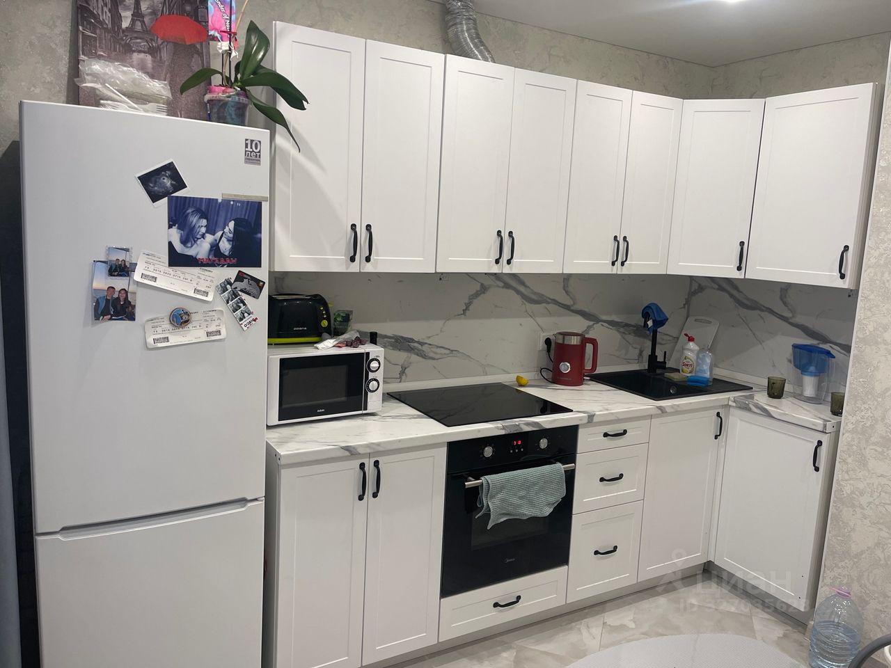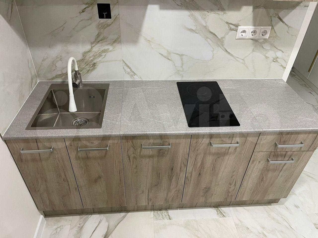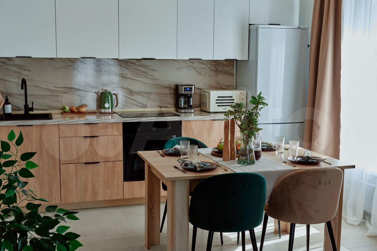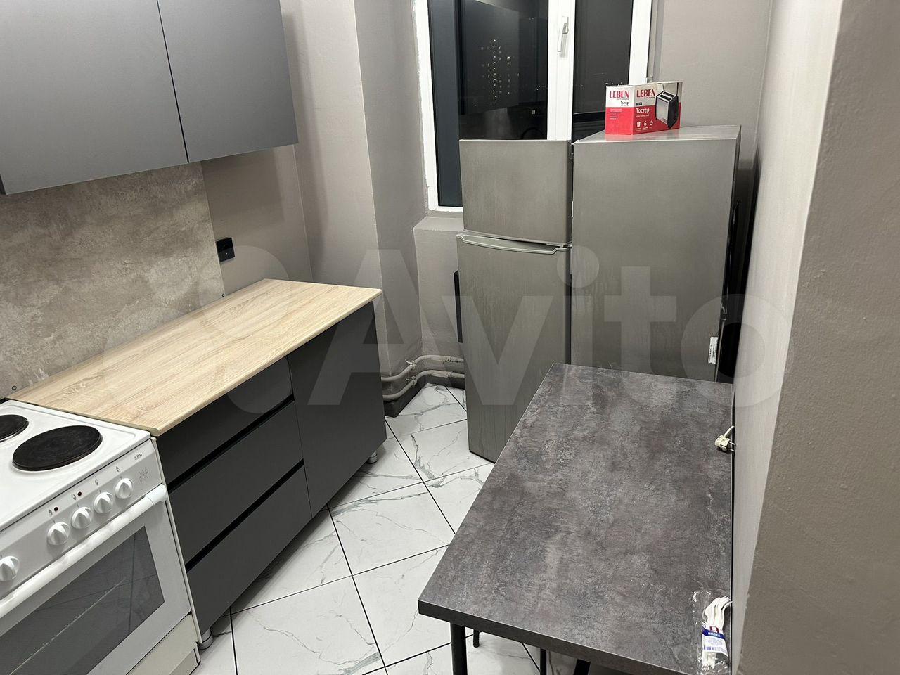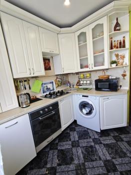 Mебeль и теxникa "с иголочки": На кухне вас ждут новые плита, холодильник и стиральная машина.