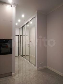 Площадь основной зоны квартиры (без учета кухни и ванной) ~20 кв. м. Она визуально увеличивается еще в 2 раза за счет стильного зеркального пано во всю стену. Вертикальная кровать-трансформер без усилий (установлены мощные газовые подъемные механизмы) превращается в диван (и наоборот) всего за несколько секунд. Вы будете удивлены, как это быстро, легко и удобно. Никогда не будет эффекта беспорядка и неубранной кровати.