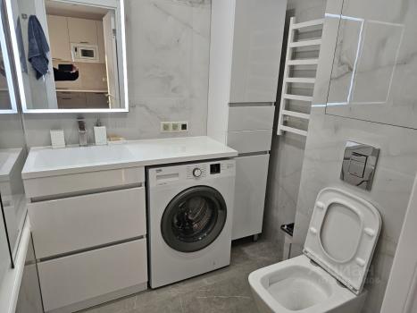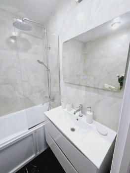 Квартира после евроремонта: современная отделка и функциональная планировка. В квартире есть всё необходимое для комфортного проживания: мебель на кухне и в комнате, холодильник и стиральная машина. Санузел совмещённый, с душевой кабиной.
