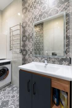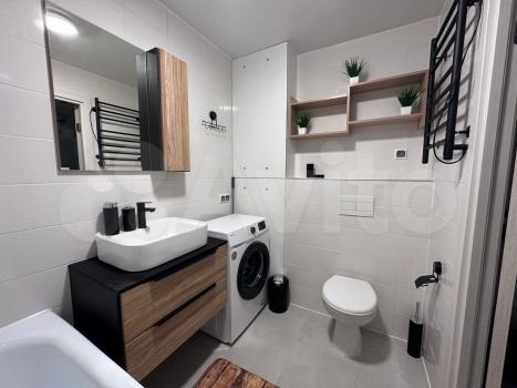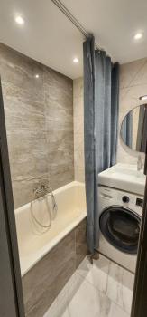Кухня оборудована необходимой техникой: холодильник, плита и микроволновая печь, телевизор . В ванной комнате установлена стиральная машина с сушилкой . Санузел совмещенный.
