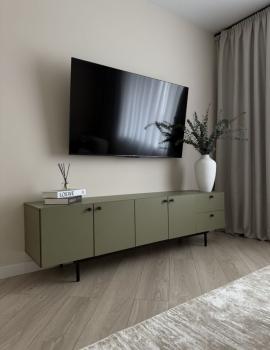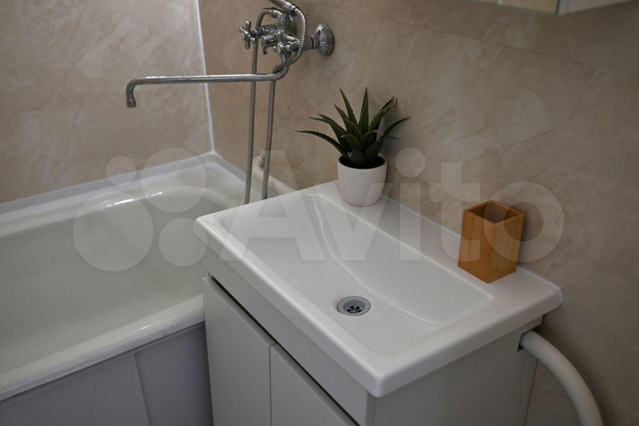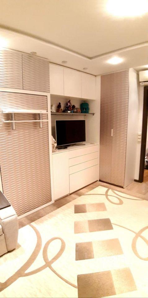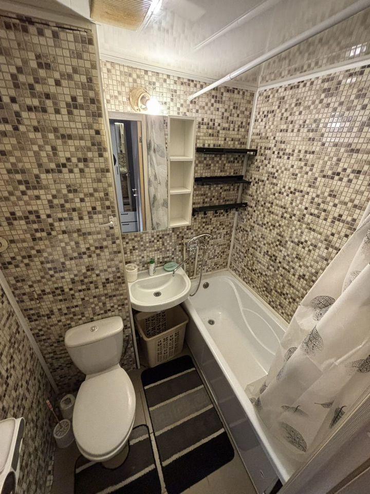 В квартире косметический ремонтй.23 . Есть вся необходимая техника: кондиционер, холодильник, телевизор и стиральная машина. В комнате 2 раскладных дивана, вместительный шкаф, тумба, телевизор. кухня оборудована всем необходимвм для приготовления пищи. Совмещенный санузел с ванной. Высота потолков составляет 2,64 м.
