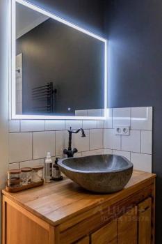 Два санузла. Один гостевой. Во втором установленная каменная раковина, тумба из тика, ванна.