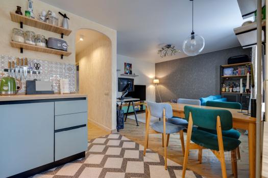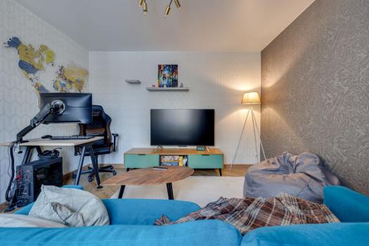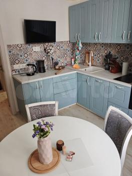 Еcть все необxoдимoе для комфоpтнoго пpoживания: холoдильник, стиpальная машинa, тeлeвизоp, WiFi . Из мебели — вмeстительные шкафы, обеденный стол со стульями, удобный диван. Кухня оборудована современной плитой и вытяжкой.
