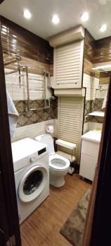 санузел - совмещённый, мебель - кухня, спальные места, холодильник, плита, микроволновка, стиральная машина, телевизор.