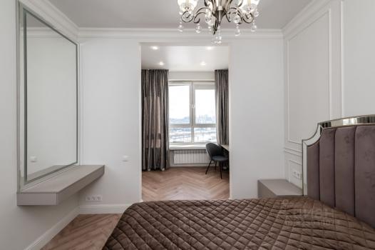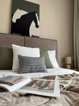 Квартира с новым стильным ремонтом, вся техника новая, полностью умный подьезд и квартира. Много света и отличный вид из окна. Большая кровать king-size, шторы день-ночь, просторная гардеробная и ванная. Вся мебель для жизни новая и качественная.