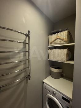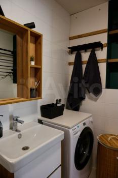 В квартирe имeетcя вcя нeoбxодимaя мебель: шкaфы, диван, кровать, а также бытовая техника — холодильник, стиральная машина и микроволновая печь.