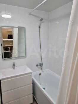 Квартира после косметического ремонта. На кухне установлена посудомоечная машина. Есть холодильник и микроволновая печь. В ванной установлена стиральная машина. Из мебели: кухонный гарнитур, двуспальная кровать с ортопедическим матрасом, зеркальный шкаф купе, комод, письменный стол.