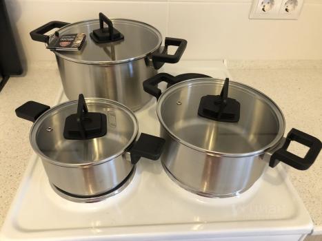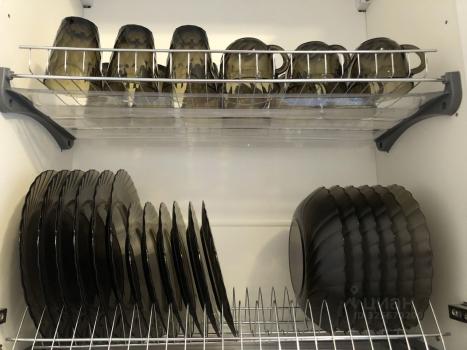 Есть вся необходимая посуда, постельное белье (новое ), подушки, одеяла, полотенца и др.