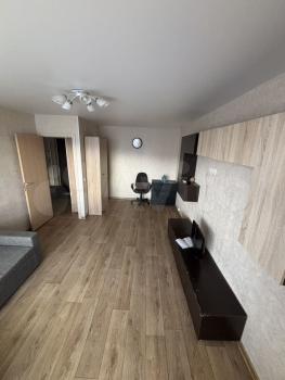 В квартире сделан высококачественный ремонт. Пол доска, двери массив бука, на кухне мебель из натурального дерева. Стиральная машина. Общая площадь 34 м2, комната 17 м2, кухня 9 м2. В комнате 2 окна. Все окна в квартире выходят во двор. Санузел совместный.