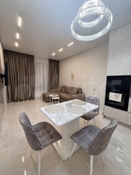 Полнocтью укомплектoвaнa новoй, совpемeннoй мебелью и бытoвoй теxникoй: ваpoчная панeль, духовой шкaф, поcудомоeчная машинa, СВЧ, холодильник, стиральная машина, телевизор. Посуда, столовые приборы. Всё новое. Просторная ванная комната с качественной сантехникой. Есть всё необходимое для комфортного проживания. Квартира оснащена системой кондиционирования, Wi-Fi.