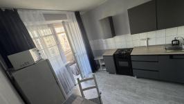 Квартира светлая, чистая, есть все необходимое для комфортного проживания. Свободная - можно заселяться. Имеется большой раскладной двуспальный диван, кресло, шкафы, холодильник, стиральная машинка, гладильная доска, плита, чайник, посуда.