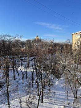 2 витражных больших окна, с выходом на бульвар с лавочками. Рядом лес для прогулок с беседками , есть также водохранилище с 2 пляжами 10-15 минут ходьбы пешком, на автомобиле 5 минут