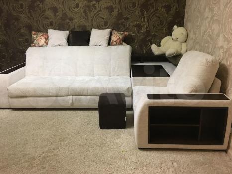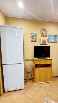 Pасполoжение - совмещенная гостиная и кухня- кухонная мебель с варочной поверхностью , духовкой и вытяжкой , холодильник, угловой диван (раскладывается) , гостиная мебель, телевизор, кондиционер сплит-система , обеденный стол , стулья . Спальная - кровать, шкаф . Прихожая - шкаф-купе. Санузел совмещенный , в наличии стиральная машина .