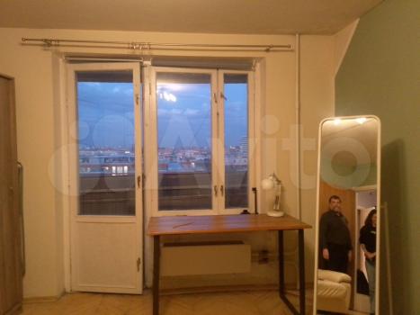 На кухне есть кран-фильтр для воды. Балкон застеклен и обустроен шкафами, на полу плитка. Спальня-двухспальная кровать и встроенный шкаф купе, в гостинной - диван и встроенный шкаф купе, плазменный ТВ. Рядом большой парк.