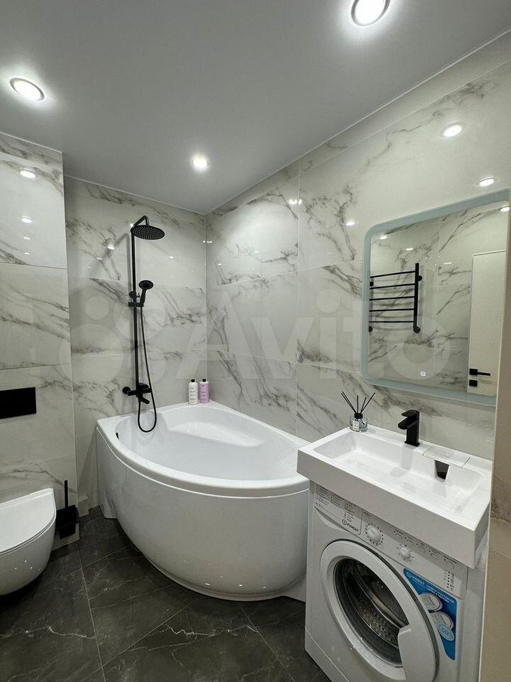 Комплектация - пмм, микроволновка, чайник, встр. холодильник, духовой шкаф, индукционная варочная, стиральная машина, полотенцесушитель электрический, пылесос.