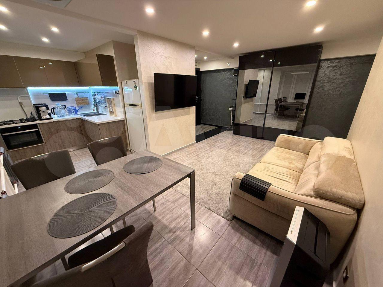 Общая площадь — 43 м². Удобная планировка: две раздельные комнаты, кухня, раздельный санузел.В гостиной оборудовано полноценное рабочее место со столом — идеально для удалённой работы. Светлые комнаты, аккуратный интерьер, есть всё необходимое для комфортного проживания.