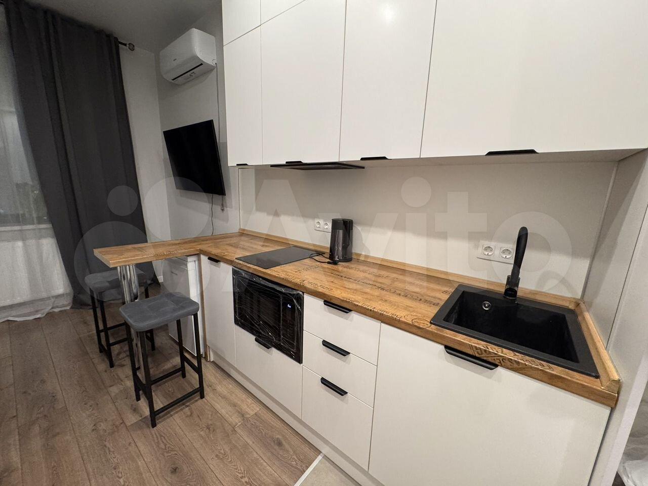 В квартире есть все необходимое для проживания: кухонный гарнитур, холодильник, кондиционер, микроволновая печь, духовой шкаф, стиральная машина, ТВ+интернет, раскладной диван, шкаф для хранения, стиральная машина, рабочее место и тд.