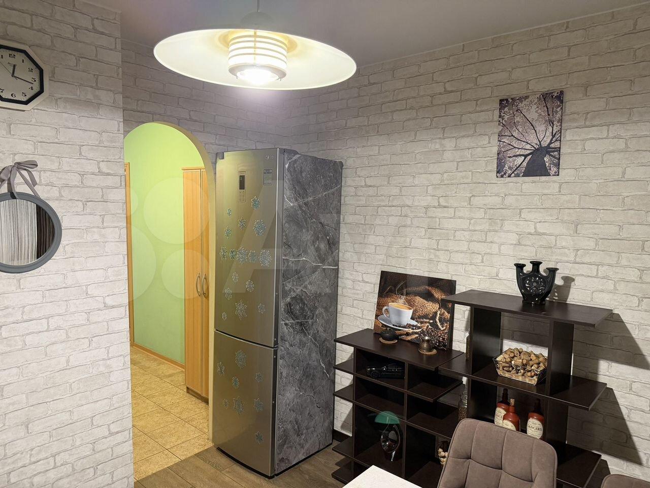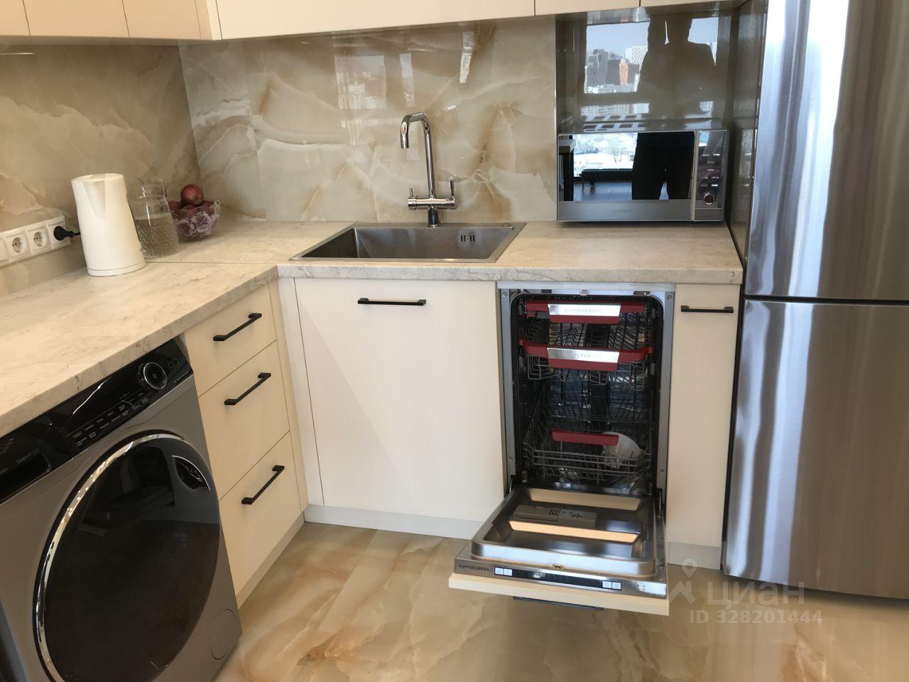В квартире есть вся необходимая техника: холодильник, посудомоечная и стиральная машины, телевизор. Мебель установлена как на кухне, так и в комнате. Санузел совмещённый, оборудован ванной. Ремонт не проводился, поэтому у вас есть возможность оформить пространство по своему вкусу.