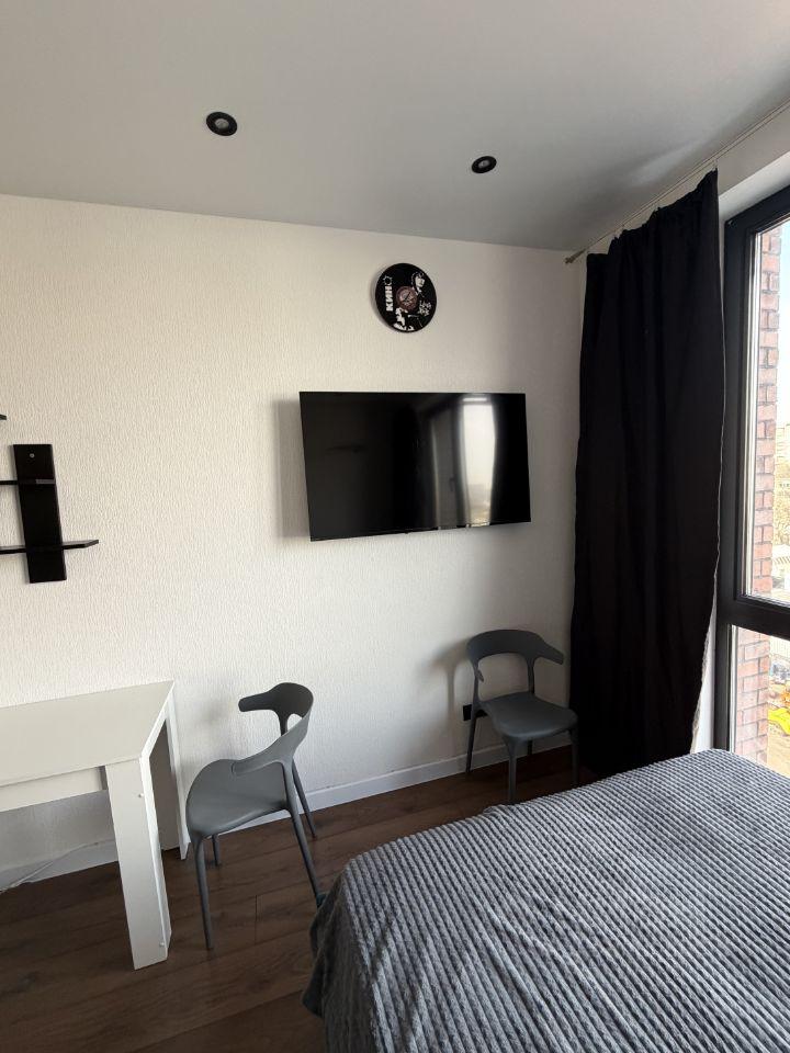 студия компактная и уютная), вся необходимая мебель имеется, с теплыми полами и с профессиональной шумоизоляцией.