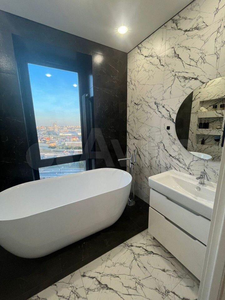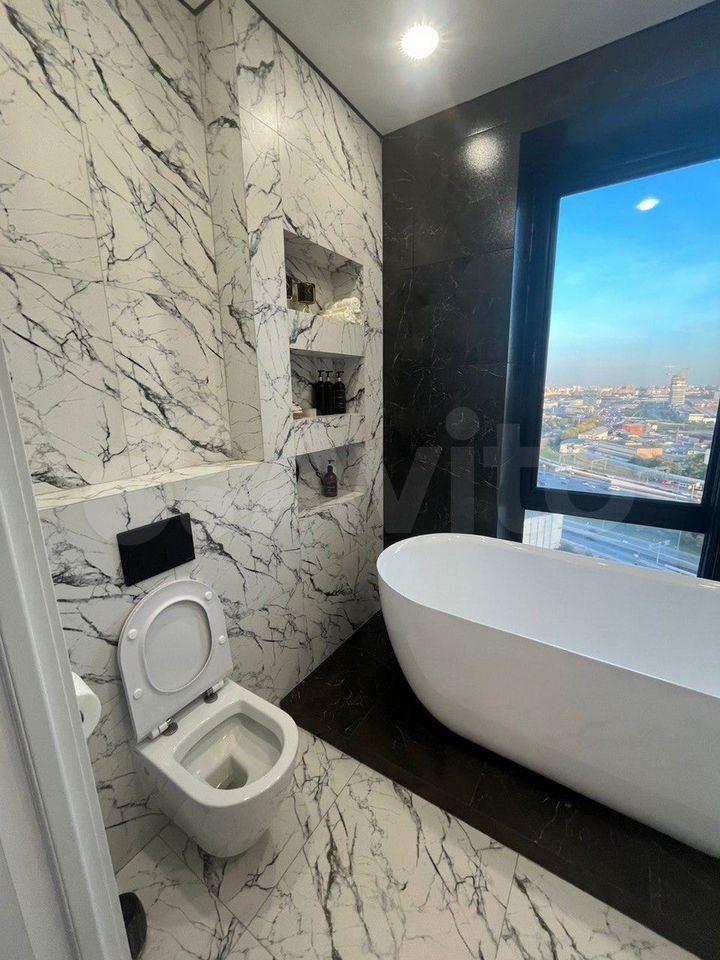 В совмещенном санузле установлена современная сантехника, стиральная машина, электрический полотенцесушитель. Из окон открывается приятный вид на городскую застройку. В подъезде есть пассажирский и два грузовых лифта, обеспечивающие удобство передвижения.