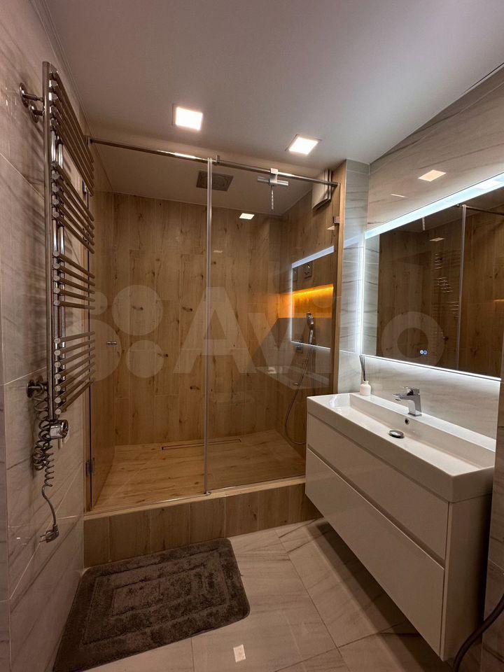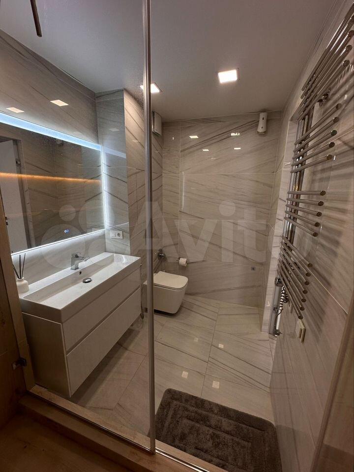 - Санузел: оснащен качественной сантехникой и современными аксессуарами, подчеркивающими высокий уровень комфорта.