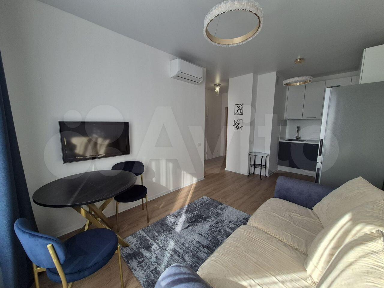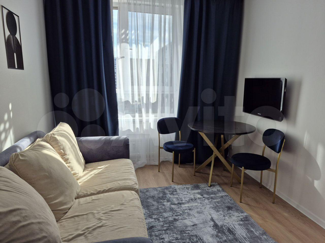 Кухня-гостиная с панорамным видом на Парк Олимпийской деревни. Квартира полностью меблирована, укомплектована всей необходимой бытовой техникой, двухкамерным холодильником ( с полным ноу фрост), варочной панелью SCOOTT CERAM, духовкой. Мебель массив. Стол 70см*1м10см (раскладывается 1м80см). Диван из натуральной кож и на 2 спальных места, телевизор с диагональю 42 дюйма. Уютная спальня с телевизором 4К, кровать 160х200см; просторный санузел с удобным туалетным столиком, стиральной машиной, безободковым унитазом. Глубокая ванна с душем. Установлена защита от протечек Нептун (зона кухни и санузла). Две гардеробные комнаты. Кондиционер.