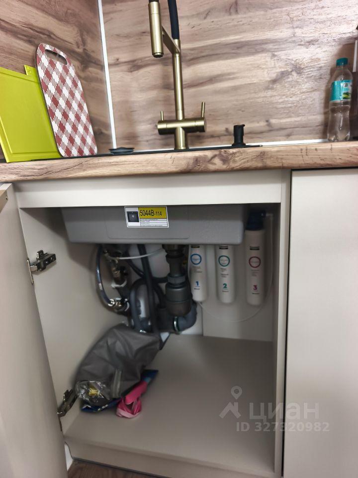 Кухня: Посудомоечная машина, индукционная варочная панель, фильтр питьевой воды, микроволновка, кофемашина и необходимая посуда.