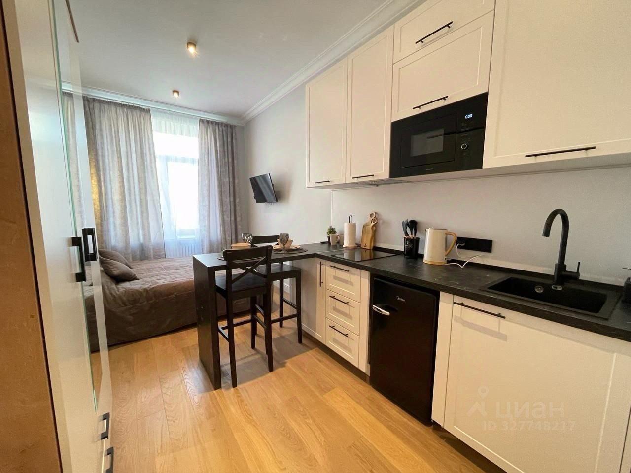 большую однокомнатную квартиру с лоджией на кухне