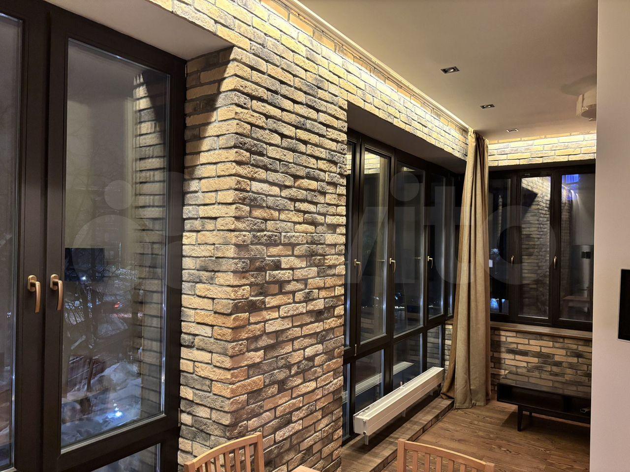 ✅ Зал: Просторный, есть двуспальная кровать, большой диван и балкон-лоджия. Балкон застеклён, утеплён, на нём поставил камин и кресло-кокон — суперуютно. Тёплый пол там же.
