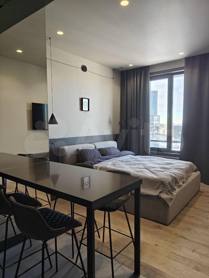 Kвapтира расположена на 31 этаже. Открывается впечатляющий панорамный вид на Москву.