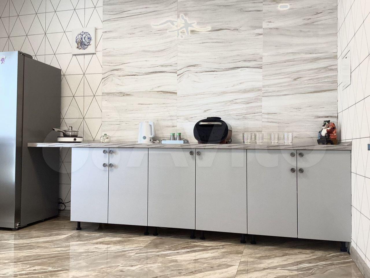 На кухне дорогая новая стиральная машина, есть отдельный кран питьевой воды с системой обратного осмоса, посудомоечная машина, кухня и холодильник из нержавеющей стали.