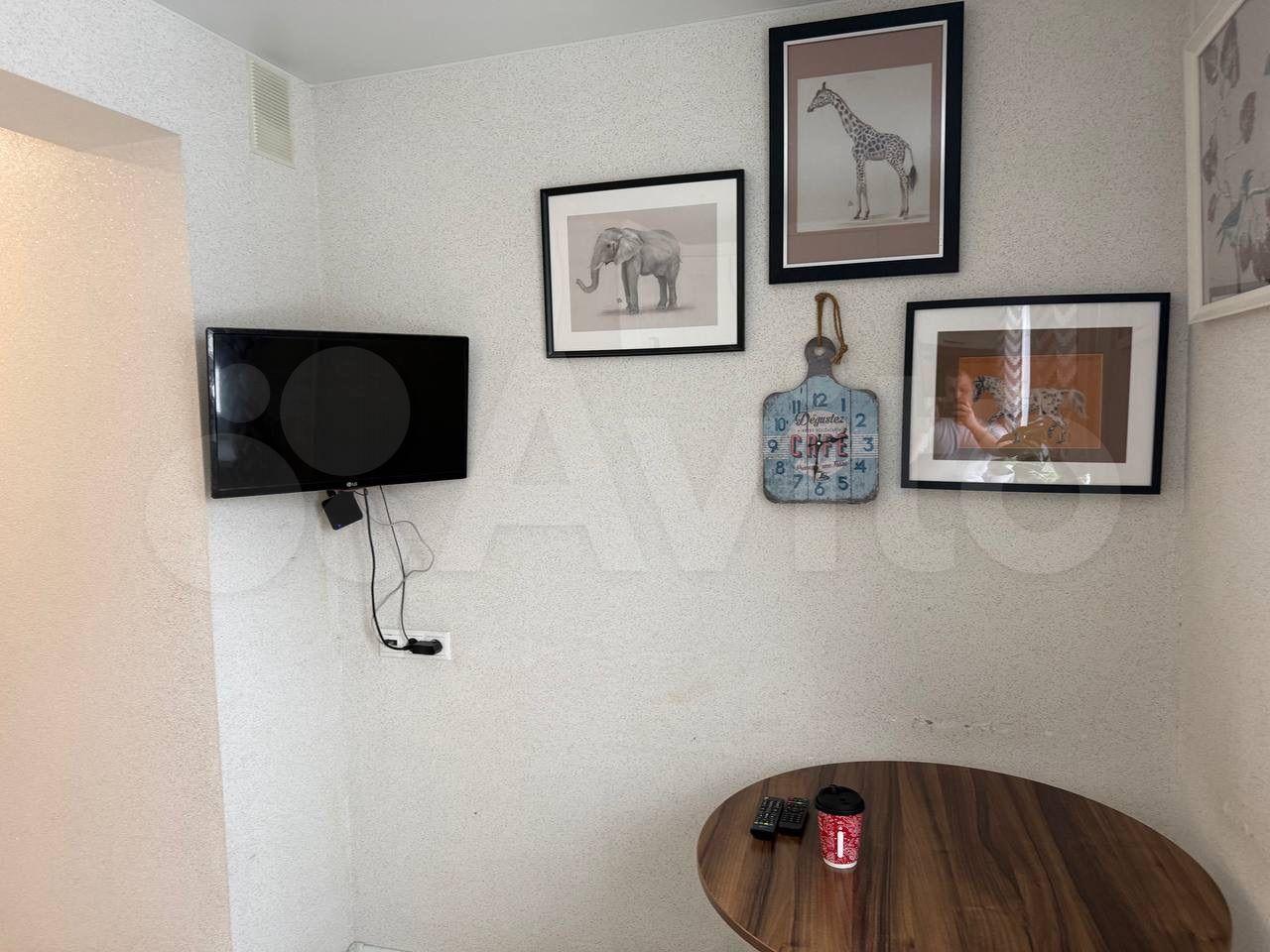 Просторная зонированная комната с кондиционером и телевизором.