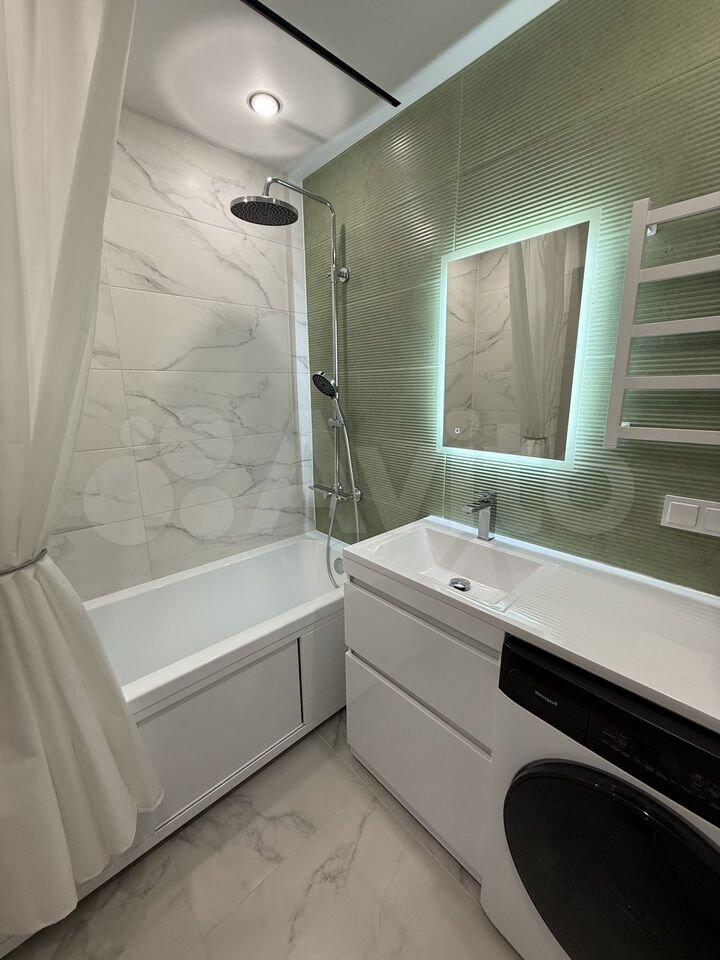 В комнате установлен телевизор с кабельным/цифровым ТВ. Санузел совмещенный, оборудован ванной и стиральной машиной.