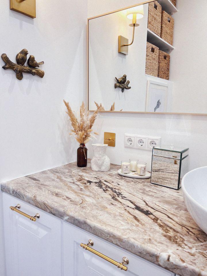 Яркая и стильная квартира, выполненная в изысканной палитре белого и золотого. Каждая деталь интерьера продумана.