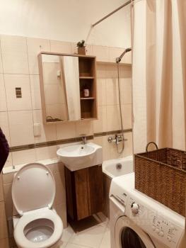 В квартире сделан евроремонт, что создает атмосферу уюта и комфорта. Кухня оборудована современной мебелью и техникой: кондиционером, холодильником, телевизором, посудомоечной и стиральной машинами. Просторная ванная комната с ванной позволит вам расслабиться после трудового дня.