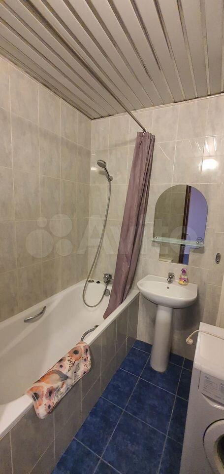 Квартира готова к проживанию. Здесь есть все необходимое для комфортного быта: в кухне и комнате имеется мебель, а также бытовая техника, включая холодильник и стиральную машину.