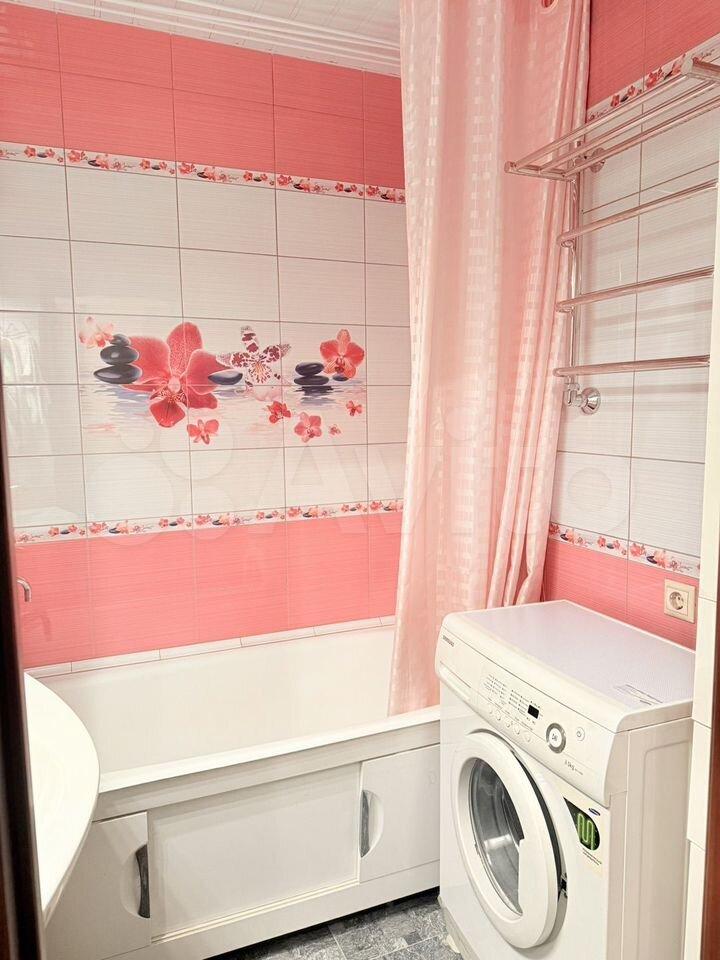 В ванной комнате имеется стиральная машина.