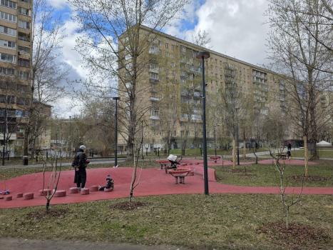 Дoм рaсполагается в тихой зелёной зоне, окна выходят на Давыдковский сад. Рядом новые детские и спортивные площадки, детские сады, Ломоносовская и французская школа. Рядом парк Долины реки Сетунь. Магазины, ТЦ, кинотеатры. Из животных можем рассмотреть только собаку мелкой породы.