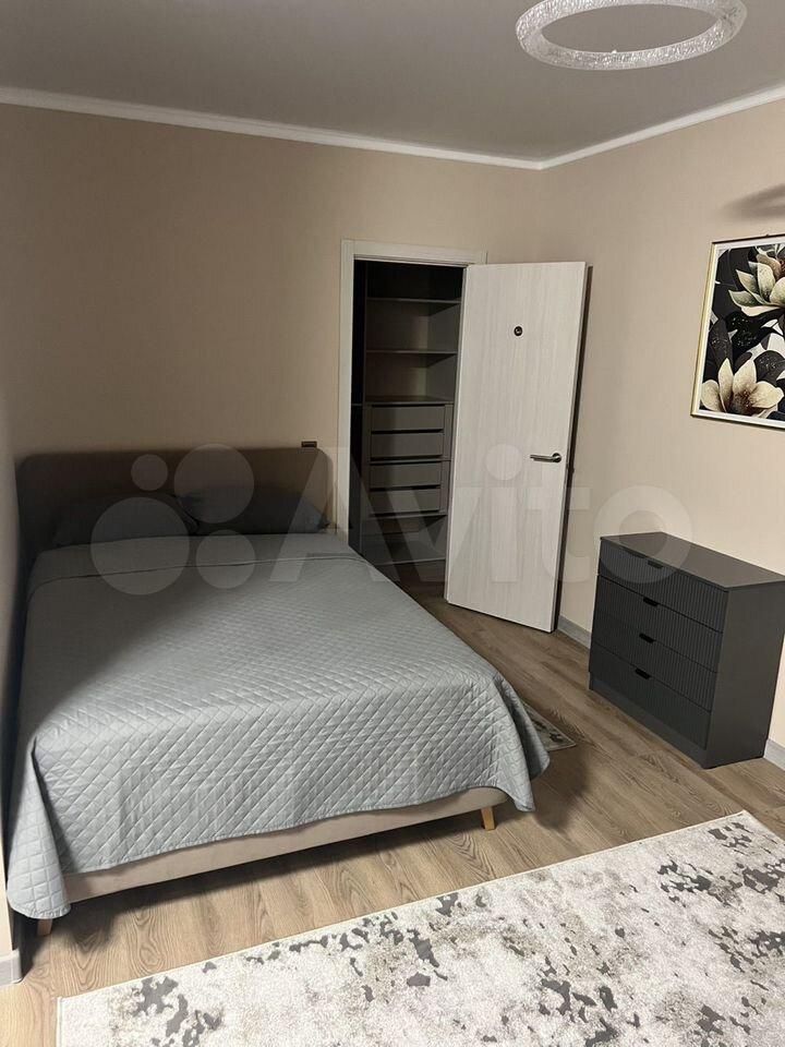 В спальне установлены кровать шириной 1,60, с подъемным механизмом и местом хранения, анатомический матрас (с независимым пружинным блоком и разной жесткостью сторон), шкаф-купе шириной 1,80 и высотой 2,40, прикроватные тумбы.