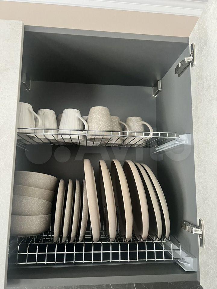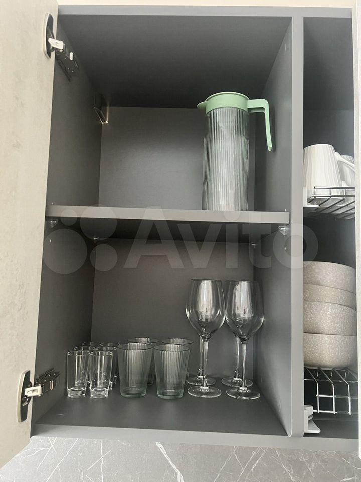 На кухне установлена система обратного осмоса для очистки воды, есть вся необходимая посуда — можно заехать и жить без дополнительных покупок.